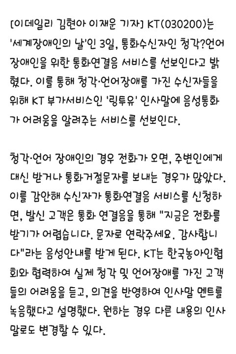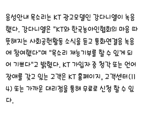KT, 청각장애인 위한 통화연결음 제공..강다니엘 녹음