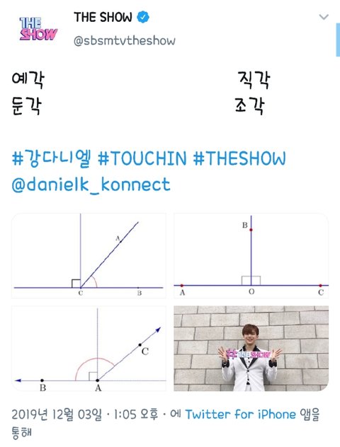 https://twitter.com/sbsmtvtheshow/status/1201714039493025792 예각 직각 둔각 조각 조각 강다니엘ㅋㅋㅋㅋㅋㅋㅋㅋㅋ 더쇼 개웃겨ㅋㅋㅋㅋㅋㅋㅋㅋ