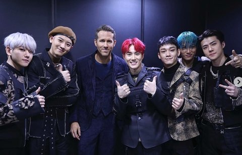 라이언 레이놀즈가 엑소와 함께 찍은 사진과