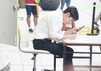 본인이 직접 글씨 쓰고 그림 그리고 꾸민 메뉴판에 뿌듯해보이는 유노윤호ㅋㅋ