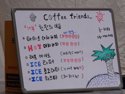 털달린 야자수같은 커피콩 나무와 본인이 좋아하는 메뉴에는 깨알같은 하트들을 그린 정윤호ㅋㅋ