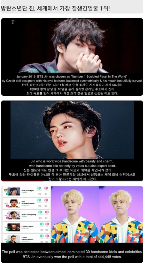 방탄소년단 진 '세계에서 가장 잘생긴얼굴' 소식