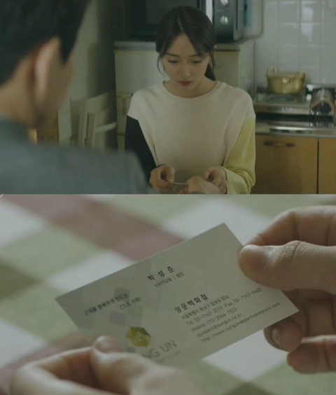 유리에게 통장과 카드 그리고 자신의 명함을 주면서