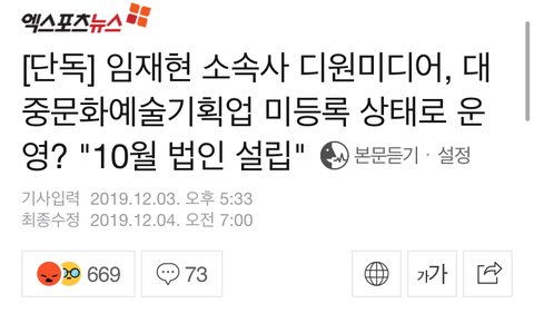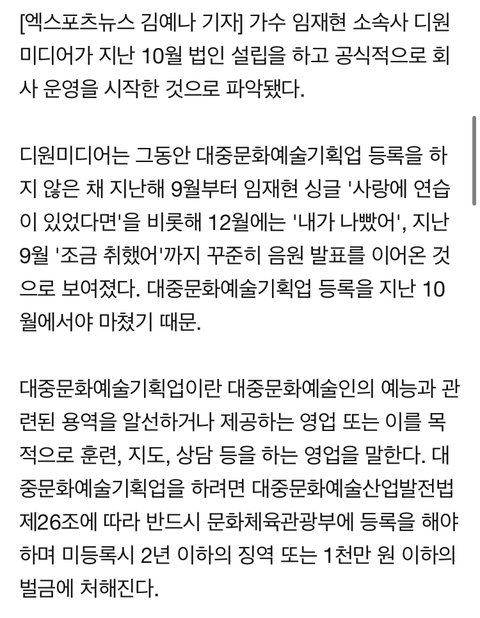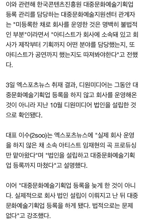 임재현 소속사 디원미디어, 대중문화예술기획업 미등록