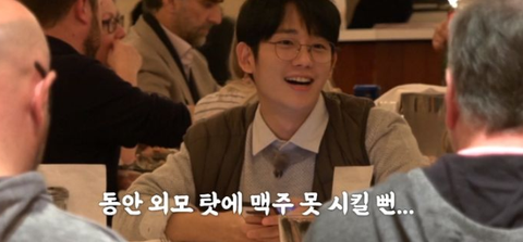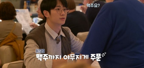 자리에 앉은 정해인은 굴과 함께 맥주를 주문했음