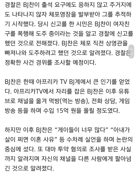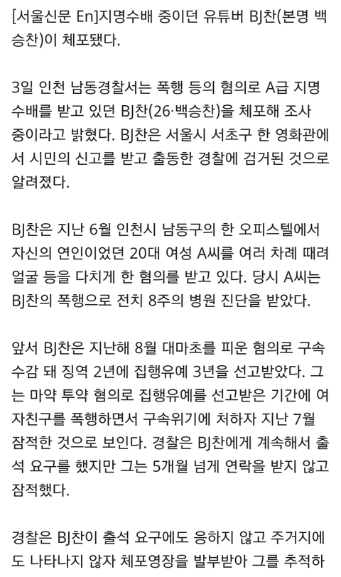 대마초+폭행 BJ찬 (백승찬) 결국 체포 됨