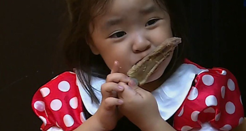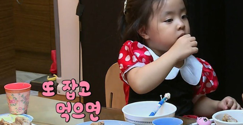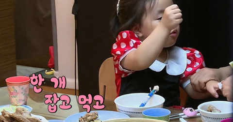 야무지게 고기 뜯고 있는 이윤지 딸 '라니'