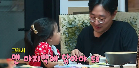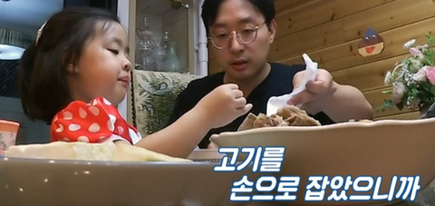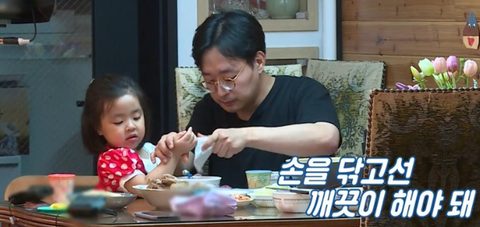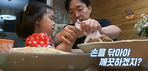 라니네 아빠가 자상하게 라니의 손을 닦아주면서,