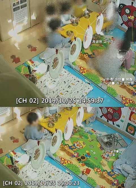 셋째, 문제의 고구마 ‘고구마 하나로 스무 명 먹여..’를 주장한 교사의 반에서는 큰 고구마 3개를 가져와서 교사가 직접 껍질을 까서 아이들 5명에게 적절하게 분배해주는 모습도 보였습니다. 왜 이런 거짓말까지 한 것인지 이해하기가 어려웠습니다.