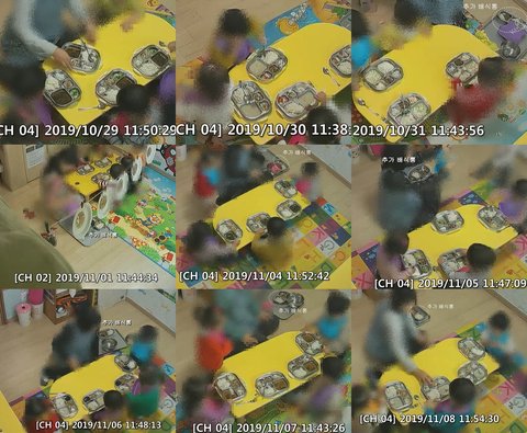 여과 없이 본 어린이 집의 식사를 보여드리기 위해 사건 발생 (11월 11일) 전 날 기준으로 CCTV에 남아 있는 점심 제공 전체 분량을 하루도 빠짐없이 캡처하여 공개합니다. 얼마든 주관적인 잣대에 따라 기준이 다를 것이라 생각합니다.