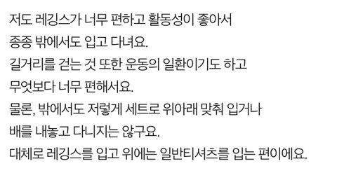 운동복인 레깅스를 왜 밖에서 입냐고 하겠죠.
