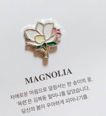 평화의 소녀상 배지를 옷에 부착한 채