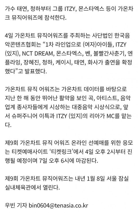9일 가온차트 뮤직 어워드 1차 라인업