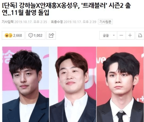 배우 강하늘과 안재홍, 그리고 가수 겸 옹성우가 '트래블러 시즌2' 출연 소식을 알린 것