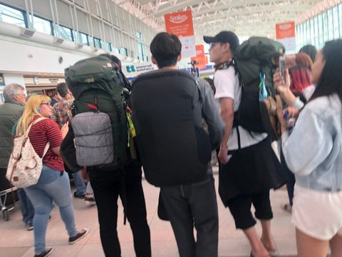 사람만한 배낭들을 메고 아르헨티나 공항 도착