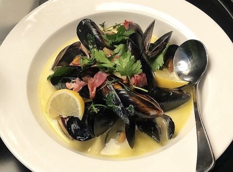크림과 버터 허브를 잔뜩 넣어서 끓인 홍합크림스튜