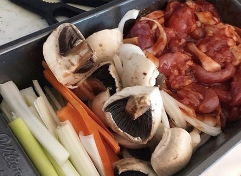 앞다리살 당근 양파 버섯 대파 마늘다진것과 고추갈아서