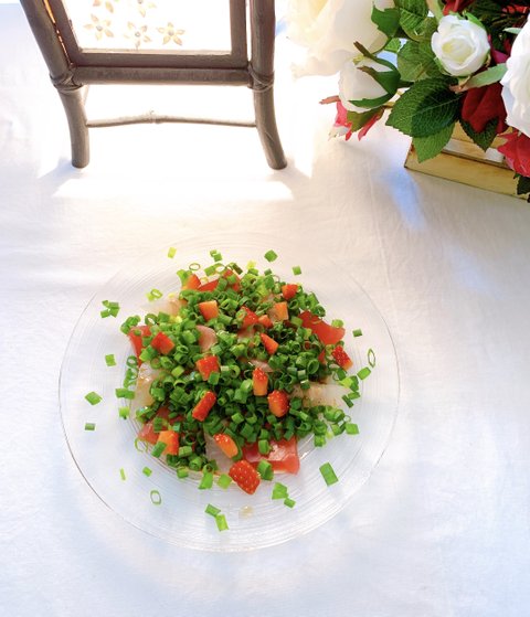 발사믹, 츠유, 레모즙 또는 식초, 후추의 산뜻한 소스를 만든다.