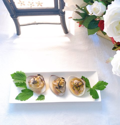 씻는 동안 해감을 한 백합에 버터, 요리술 또는 화이트 와인, 마늘에 조개가 벌어질때까지 뚜껑을 덮어 살짝 쪄내듯 구워낸다.