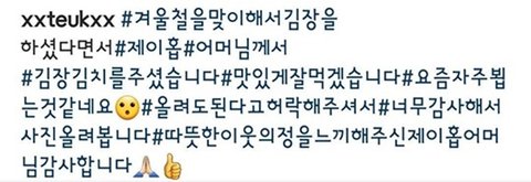 방탄 제이홉 어머니께서 직접 만드신 김장 김치 이특한테 보내줬대ㅋㅋㅋㅋㅋㅋㅋㅋㅋ