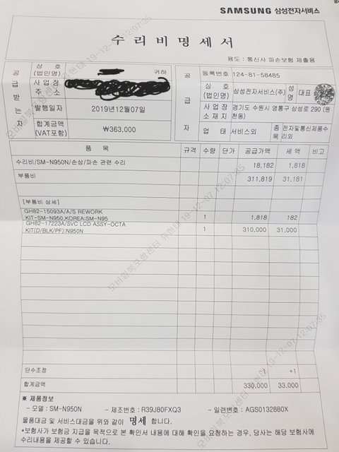 그래서 금액이 온금액이라고 .. 보험사제출용인거보니 보험파손보험금도 타먹으려나봐요
