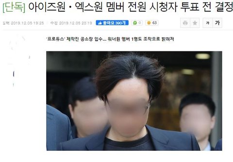 아이즈원도 시청자 투표 전에 멤버를 정했다. 김 CP와 안 PD 등 3명은 지난해 8월 생방송 투표 전 ‘프로듀스48’을 통해 선발되는 아이즈원 멤버 12명과 순위를 임의로 결정했다. 김 CP 등은 ‘프로듀스X101’ 때와 마찬가지로 최종 생방송 전 데뷔 멤버 선정을 위한 사전 온라인 투표 중간 결과 아이즈원 선발 순위권이었던 12위 안에 자신들이 원치 않은 연습생들이 포함돼 있자, 이들을 제외시키기로 한 것으로 조사됐다.