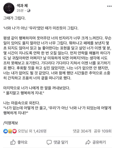 네가 잘 지낸다고 해서 다행인데 사실 많이 슬퍼