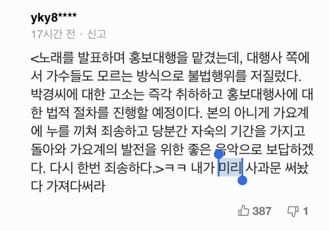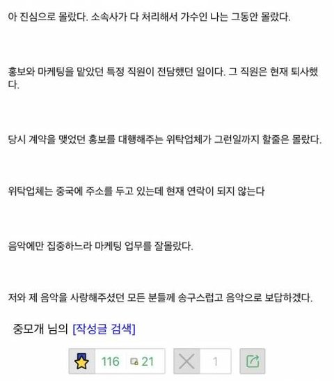 사재기가 사실로 드러나면 해당 가수에게서 나올 말