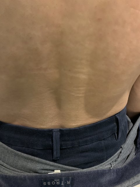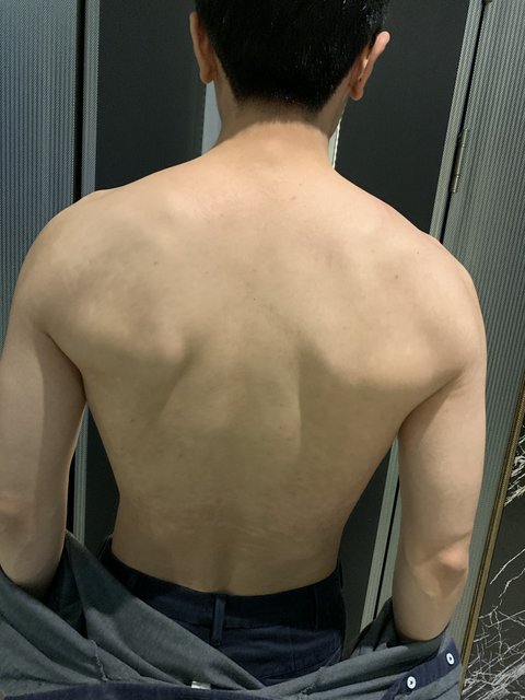 아....튼살! 인증...ㅎㅎ 어깨를 펴고 등을 펴니까 튼살이 잘 안보여서 구부정하게 찍...었