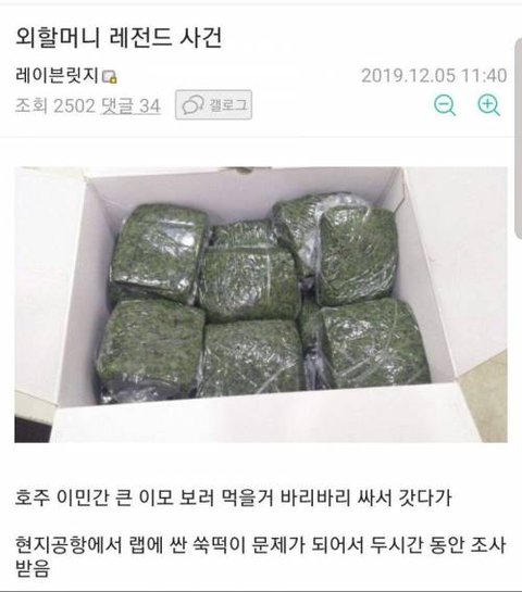 마약및 금지약물 밀반입때문임 안에 들어있는 고물이 이물질로 나올거고ㅋ 떡이란 음식 잘 모르는 호주인들은 그안에 뭐 숨겨들어왔을거라 생각했겠죠 영문도 모르고 말도 안통하는 상태에서 할머니가 계속 항의하셨으면ㅋㅋㅋ 걔네입장에선 더 의심했을듯ㅋㅋㅋㅋ
