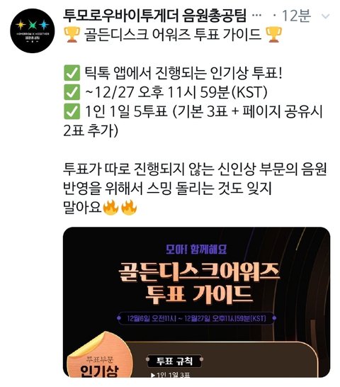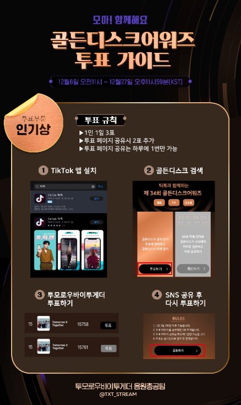 골디 인기상 투표가이드가 투모로우바이투게더 음원총공팀에서 공지되었습니다!
