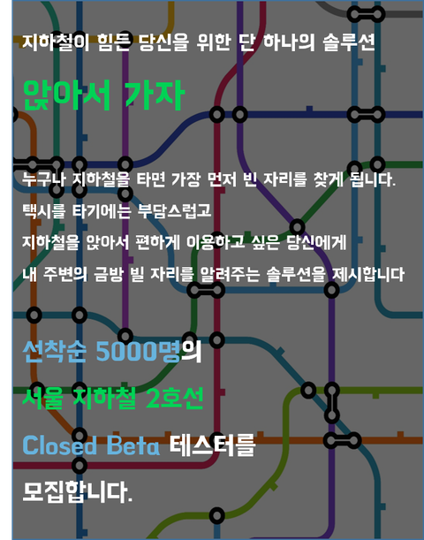 현재 서울 지하철 2호선을 시범적으로 테스트하고자 베타 테스터를 모집하고 있습니다!
