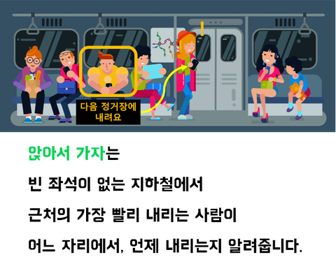 처음에는 지하철을 이용하는 사람들이 자신이 언제 어디서 내린다는 정보를 어플에 입력하면 그 정보가 지하철을 이용하는 임산부에게 전달되어 가장 가까운 열차, 칸의 가장 빨리 내리는 좌석 위치 정보를 전달해 주는 서비스를 구상했었습니다.