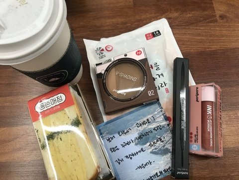 먼저 나은이가 모델하고 있는 페리페라에서 파인에플들을 위해 준비해 준 화장품이랑 리콜라 사탕이야