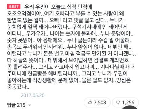 주접댓글이 저 때가 제일 좋은듯 안오글거리고 재밌고... 지금은 너무 흔하고 오글거리게 되버림