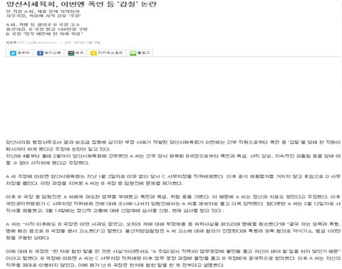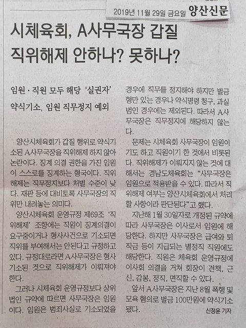 저는 2018년 4월 1일부터 2019년 2월 12일까지 경남의 한 시 체육회(전액 세금으로 운영되는 단체)에서 주임으로 근무했었던 직원입니다.