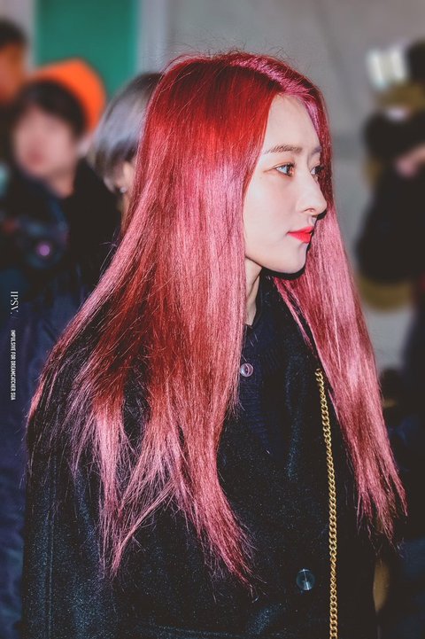수아는 갈색 머리였는데 빨강으로 바뀜