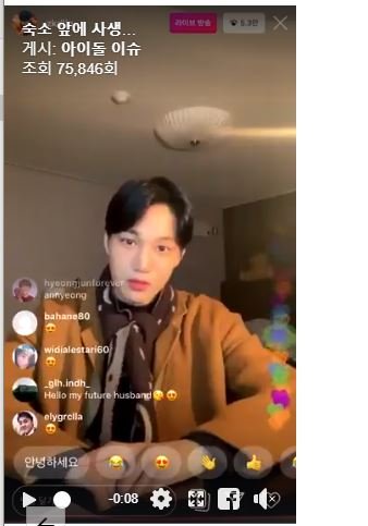 지난 8일 카이는 스케줄을 끝내고 팬들과 소통하기 위해 인스타라이브를 진행했다. 카이는 "안녕, 여러분 음방 하려면 일찍 자야 되는데 오랜만에 라이브를 켰다"며 팬들에게 말했다.