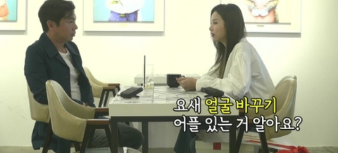 솔지가 사진을 찍고 어플을 이용해서 얼굴을 바꾸는데,,