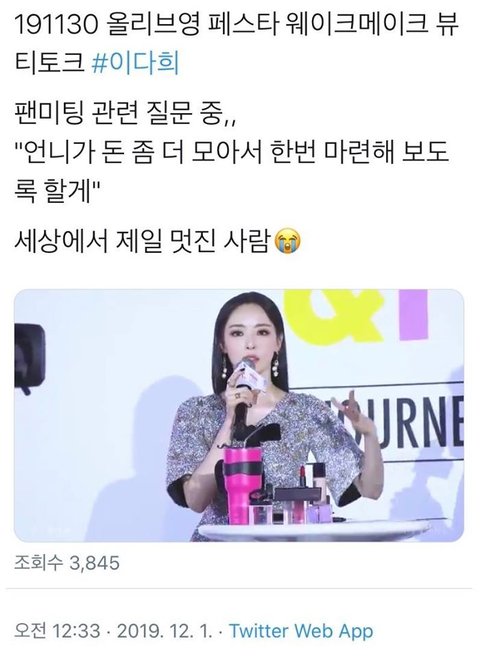 팬들이 팬미팅을 너무 원하니까 본인이 나서서 사비로 열어준다고...