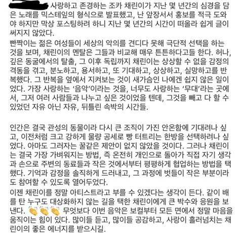 씨엘 이모가 올린 글보니까 맘고생 너무 심했을거 같음 ㅠㅠ 깊은 동굴에서의 탈출이라고 하신거 보면서 답답하고 소름 돋기까지... ㅠㅠ 팬은 아닌데... 응원 많이 해주고 싶음!