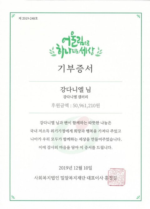 올라온 기부증 첨부