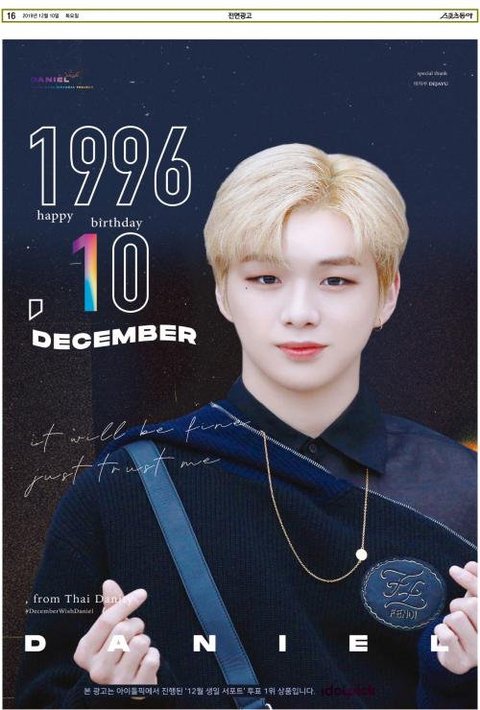 191210 스포츠동아 강다니엘 생일축하 전면광고