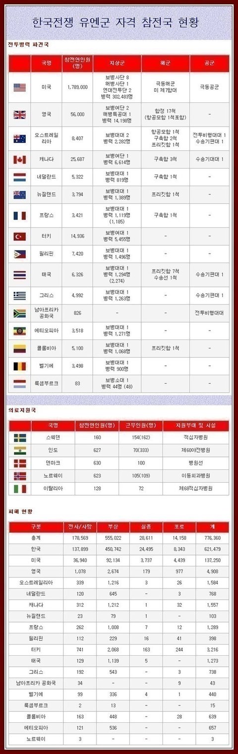 우리나라를 위해서 싸운 우방들입니다 당신이 지금 존재할수 있도록 분들입니다 제발부탁하빈다