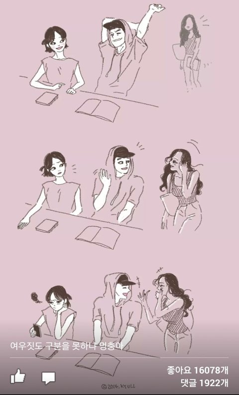 여우짓이라기보단 보통 정상인은 여자친구와 남자친구 둘다한테 인사하고 적당히 안부묻다 지나가는데 저 상황은 남자친구랑 단둘이 웃으면서 떠들고 있으니 혼자 된 사람이 기분이 나쁜거임 남자 여자 상황 바꿔도 동일하고 여우짓이라고 하기엔 좀 약함 그냥 매너나 센스가 좀 모자란거