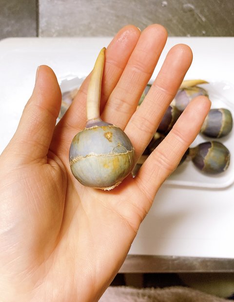 맛은 고구마와 밤을 섞어놓은 듯하고