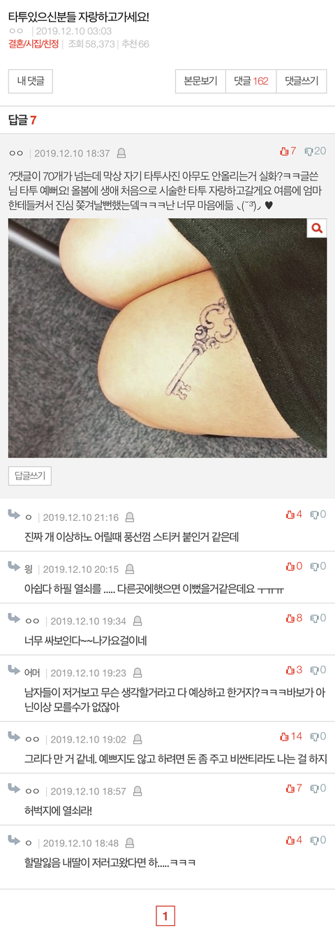 타투자랑하자는 톡선에 어떤분이 남긴댓글인데 이거 나만예뻐보이나...댓반응 개살벌
