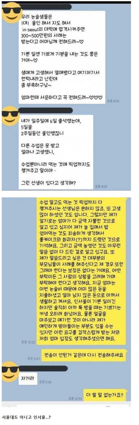 인서울 가게 해줬으니 500 달라는 과외쌤