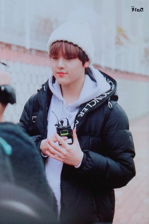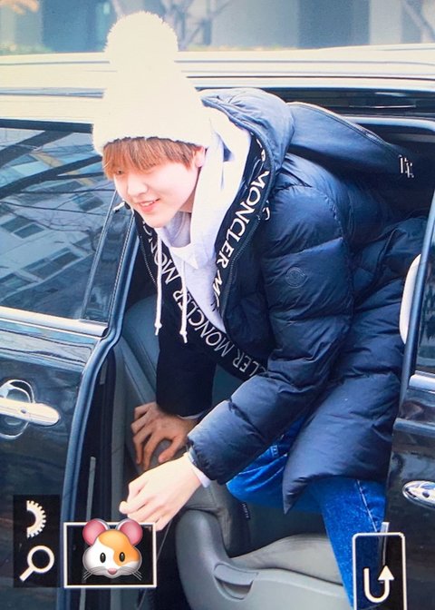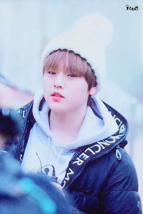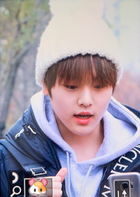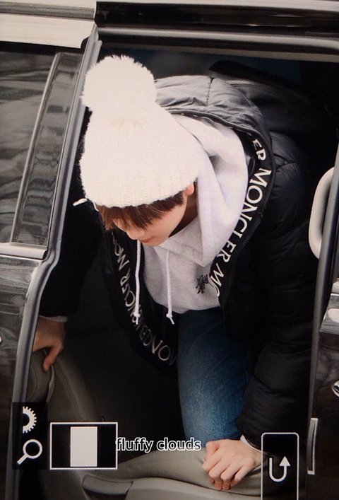 흰 털모자에 가방 잡고 있는 손 귀엽ㅎㅎ