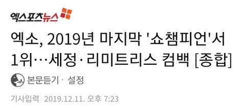 2019년 마지막 쇼췜 1위래!!!! 열투했는데 뿌듯하다
